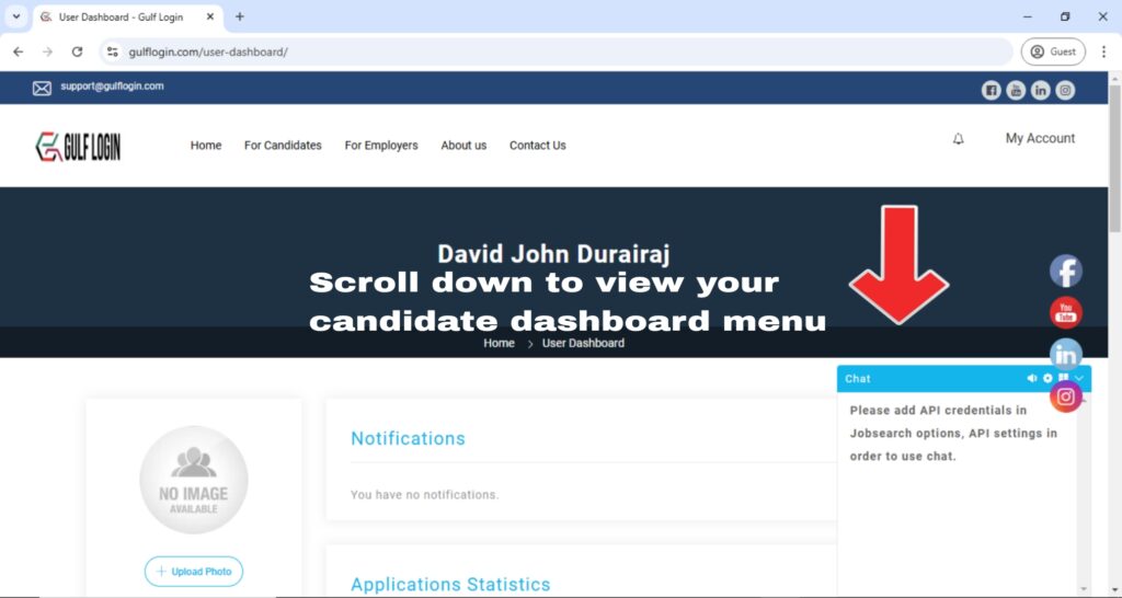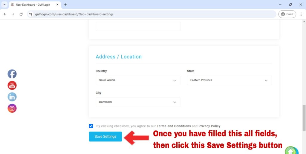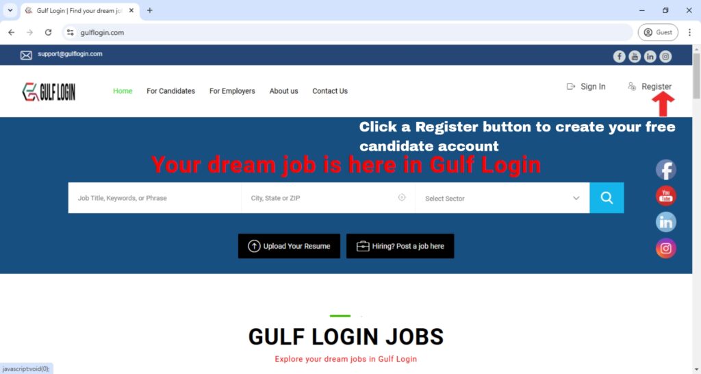 Step 1 : Click a Register button to create your free Candidate Account in our Gulf Login home page.