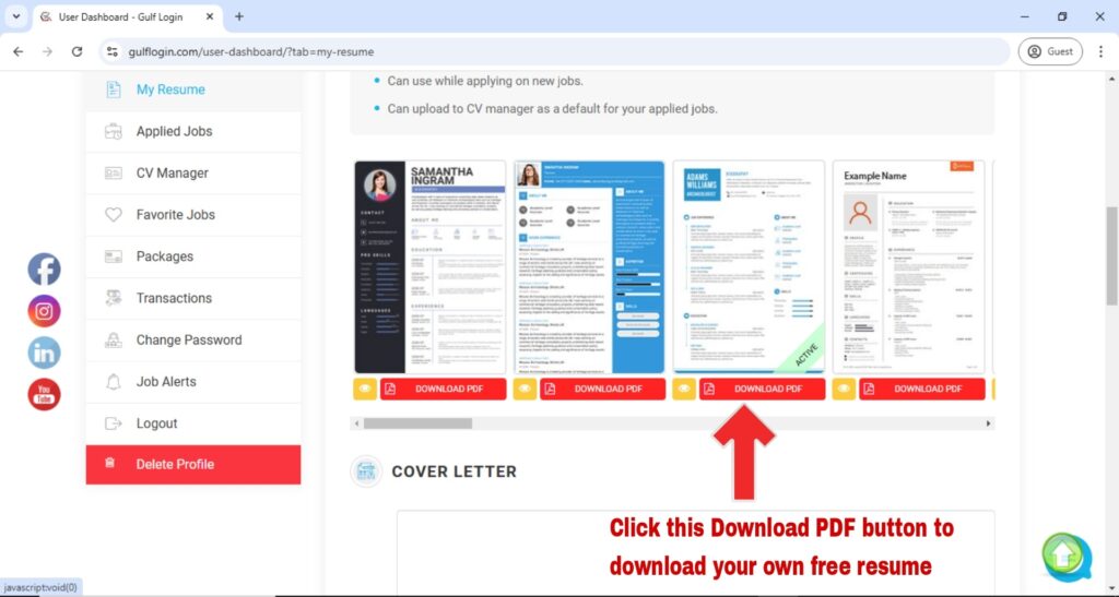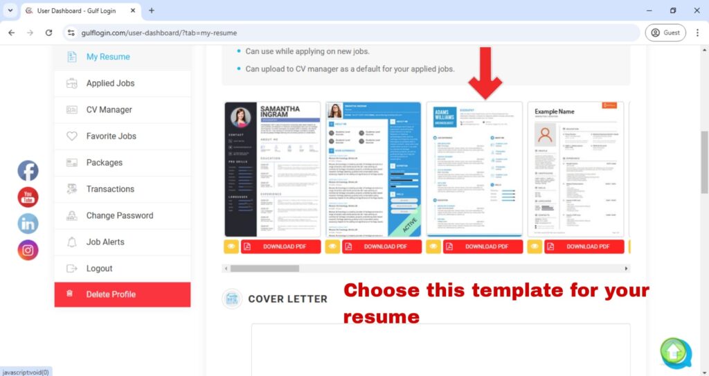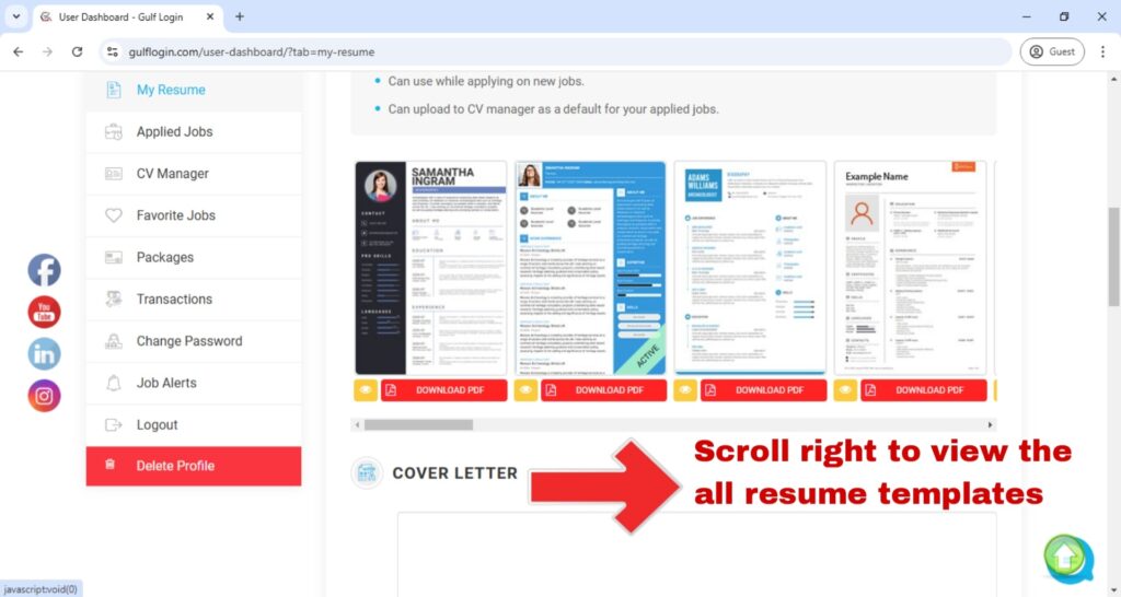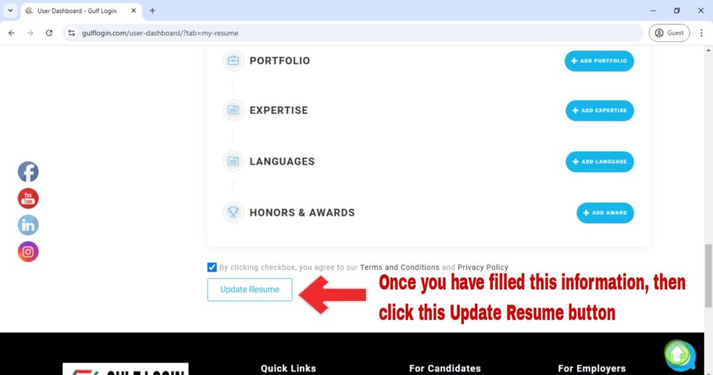 Follow the below steps that will help you how to easily create your Resume in Gulf Login for Desktop users.