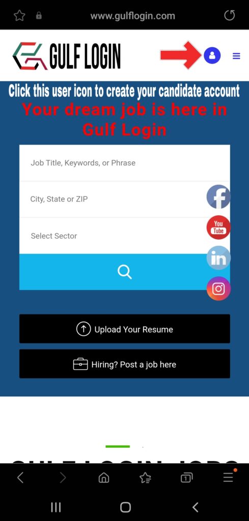 Follow the below steps that will help you how to easily create your resume in Gulf Login for Mobile users.