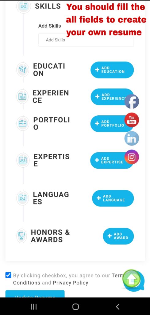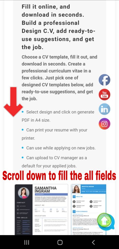 Step 8 : Scroll down to fill the all fields for create your own free resume.
