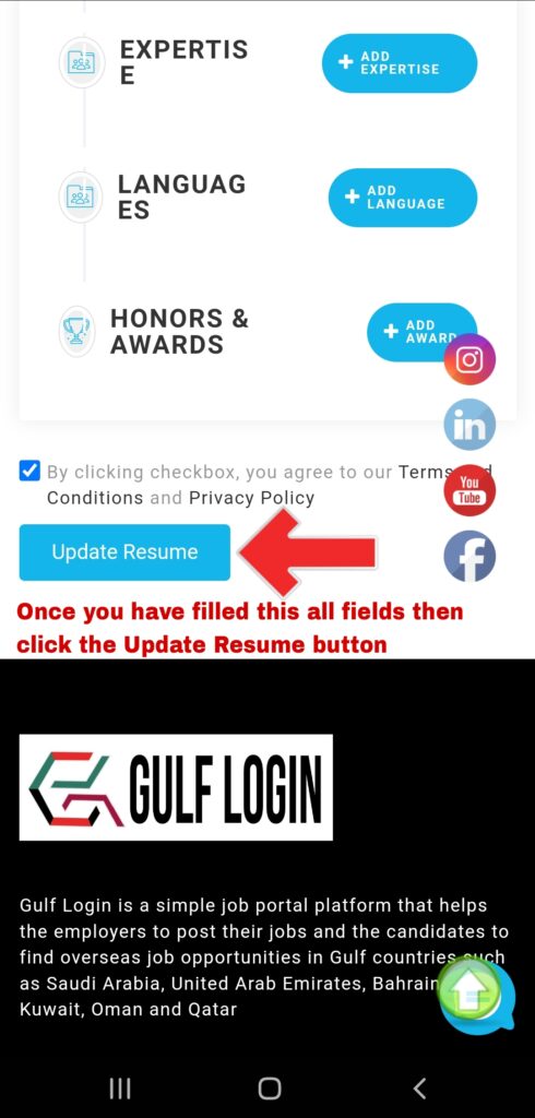 After filled this all fields then click this Update Resume button to save your information.